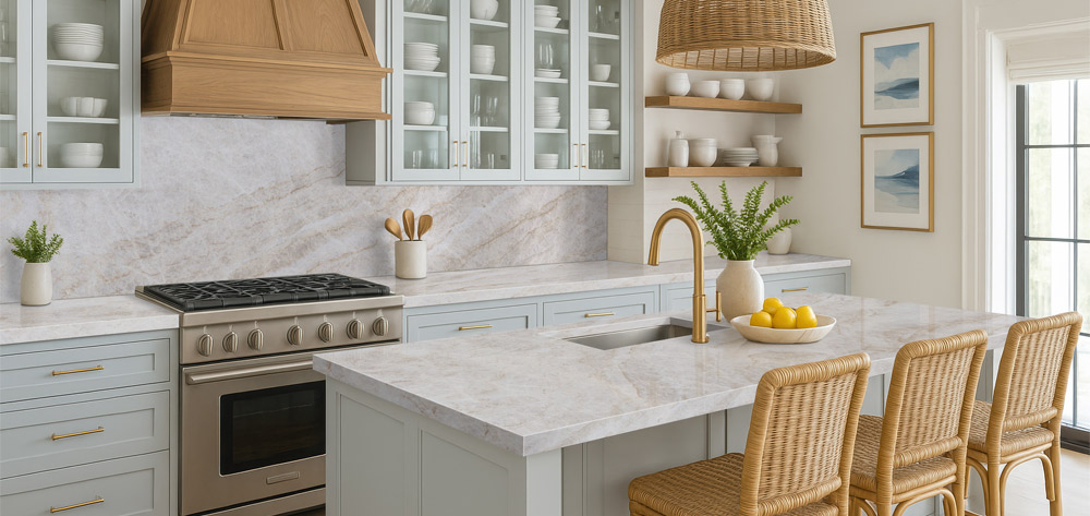 Our new assortment of countertops and slabs blend quality and style, from Q™ Premium Natural Quartz to timeless quartzite, granite, and marble. Trusted by designers and homeowners, these versatile surfaces transform residential and commercial spaces with limitless possibilities.