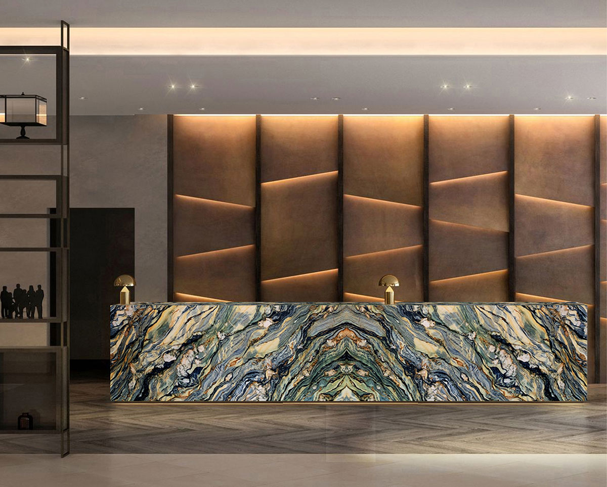 Bold sunny yellows, sweeping charcoals, and hints of turquoise give Azul Treasure Quartzite the essence of a Van Gogh painting. Create true works of art in your home or business by crafting extraordinary quartzite countertops, show-stopping accent walls, floors, backsplashes, and other architectural features. Quartzite is a natural stone that is durable, easy to clean, […]