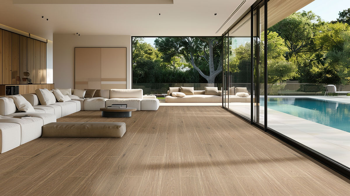 Refresh your space with Cabana Honey porcelain tile, offered in an impressive 9” x 47” large format that captures attention in any room. This contemporary porcelain wood tile showcases captivating brown tones, harmonized with natural-looking knots and grains for an authentic allure. With a plethora of distinct wood grain patterns, each tile embodies the intricate […]