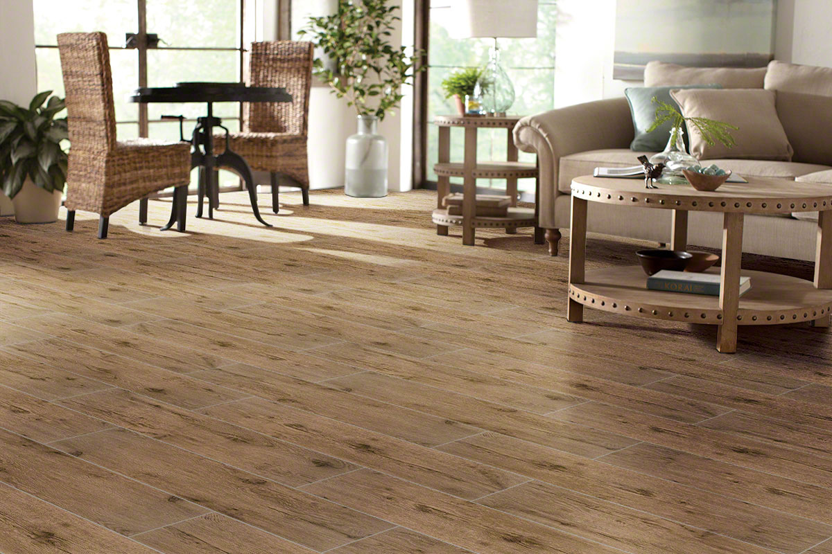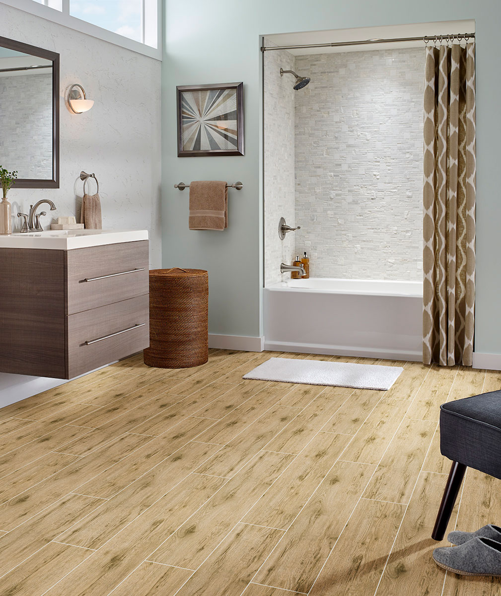 Celeste Taupe Ceramic Wood Tile features warm brown and taupe tones in a classic refined wood grain finish that blends perfect with a variety of design styles from traditional to contemporary. Use this wood tile flooring in areas where moisture and dampness is likely like bathrooms, kitchens, laundry rooms, and entries. This wood tile is […]