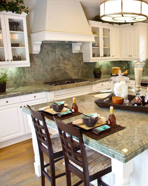 Costa Esmeralda granite from Italy is a beautiful durable granite for interior and exterior projects, including commercial flooring and landscaping and residential applications such as granite countertops, backsplashes and more. The light green and gold veining is distinctive with medium variations.