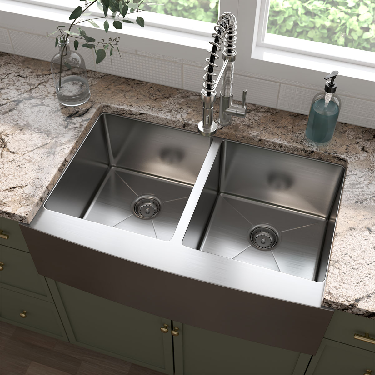 This handcrafted double basin undermount sink features a beautiful curved apron for that sought-after finished look. Constructed with 16-gauge stainless steel for reliable durability, it offers two equally sized deep basins (10β each). Big family dinners? No problem. This hardworking sink can handle oversized cookware like stockpots, slow cookers, and baking sheets. An ideal choice […]