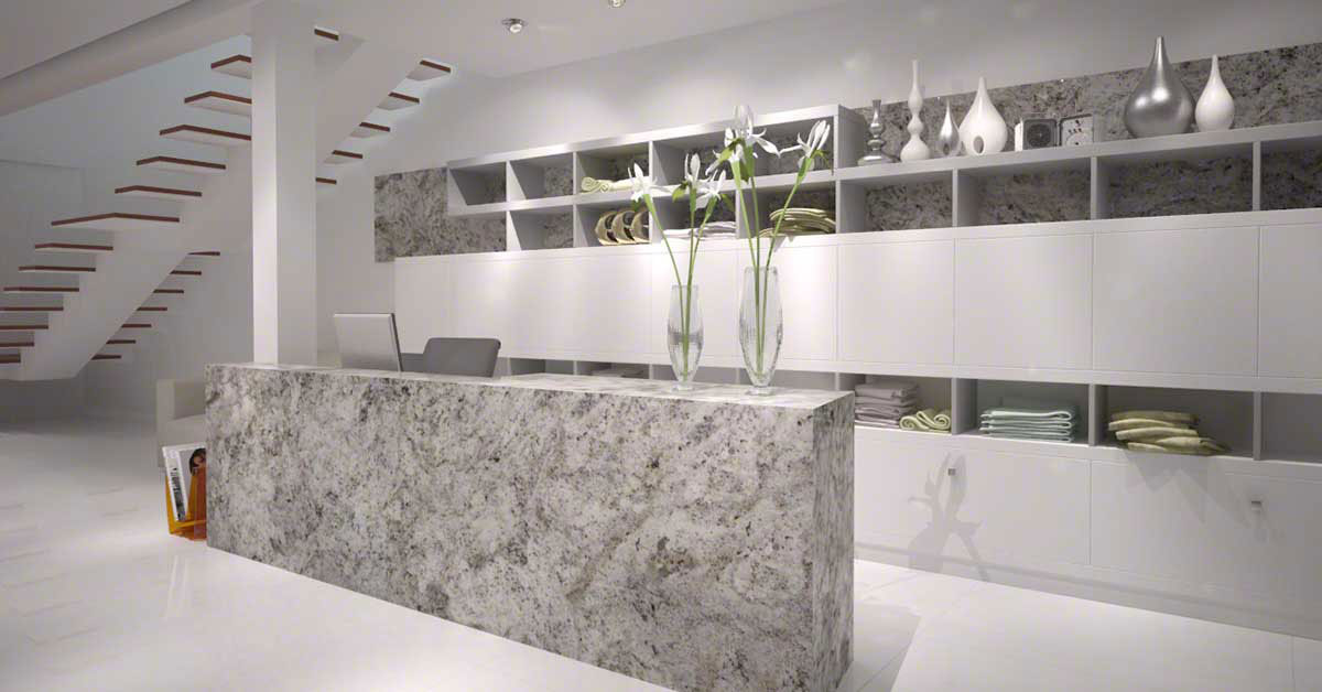 Salinas White Granite is a medium variation, polished granite available in 2 cm and 3 cm slabs. This snowy white granite is accentuated with densely packed onyx speckles; light pewter eases the transition to lower the contrast. This attractive Brazilian stone is perfect for many different home and business applications, including granite countertops.