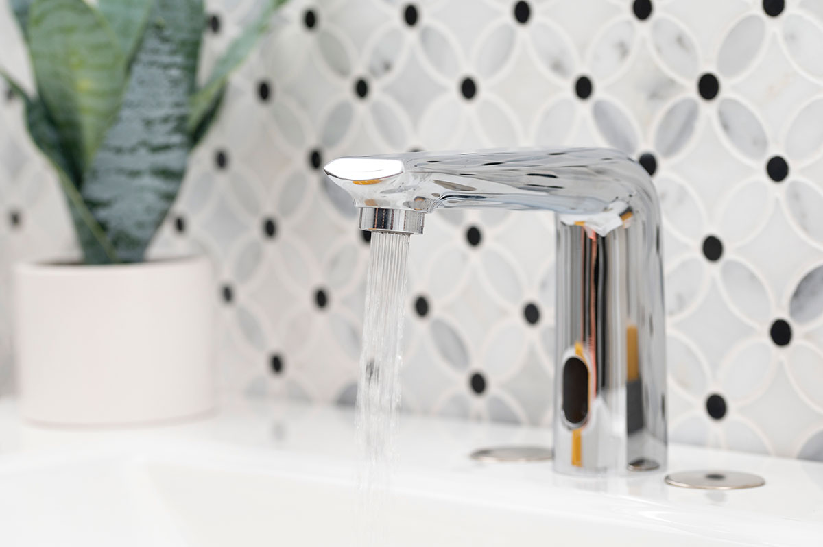 Today’s world is a touch free one. To prevent as few germs from spreading as possible, the touch-less infrared sensor bathroom faucets are popular in homes as well as commercial spaces. The polished chrome faucet meets today’s design needs and adds upscale flair to a bathroom or powder room.