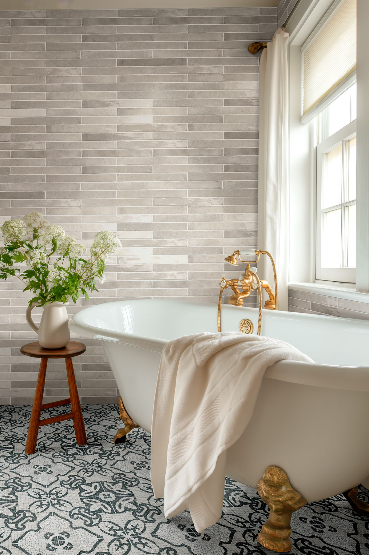 Enhance your living spaces with the exquisite Trastevere Porcelain Floor and Wall Tile. This 8” x 8” square tile boasts an encaustic design that exudes timeless charm. When grouped in fours, it forms a captivating medallion motif, adding an artistic flair to any room. The mosaic patterns, blending warm white tones with bold black designs, […]